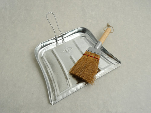 TIN DUSTPAN & PALM CLEANING BRUSH SET**