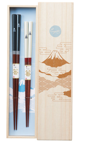 FUJI CHOPSTICKS GIFT SET KIRI WOOD BOX (BLUE & WHITE)