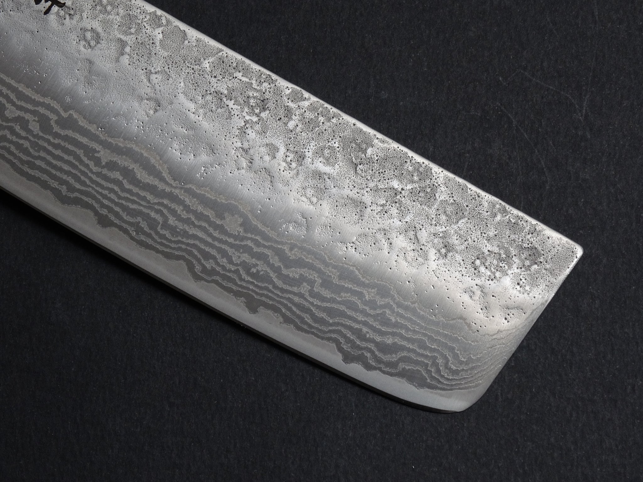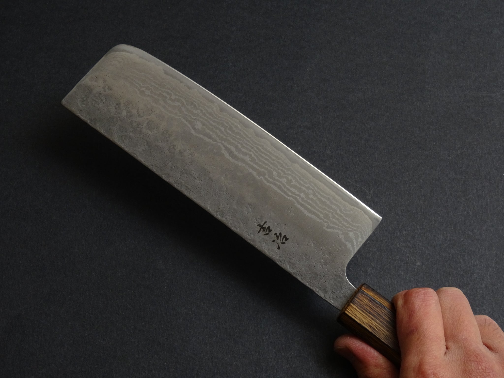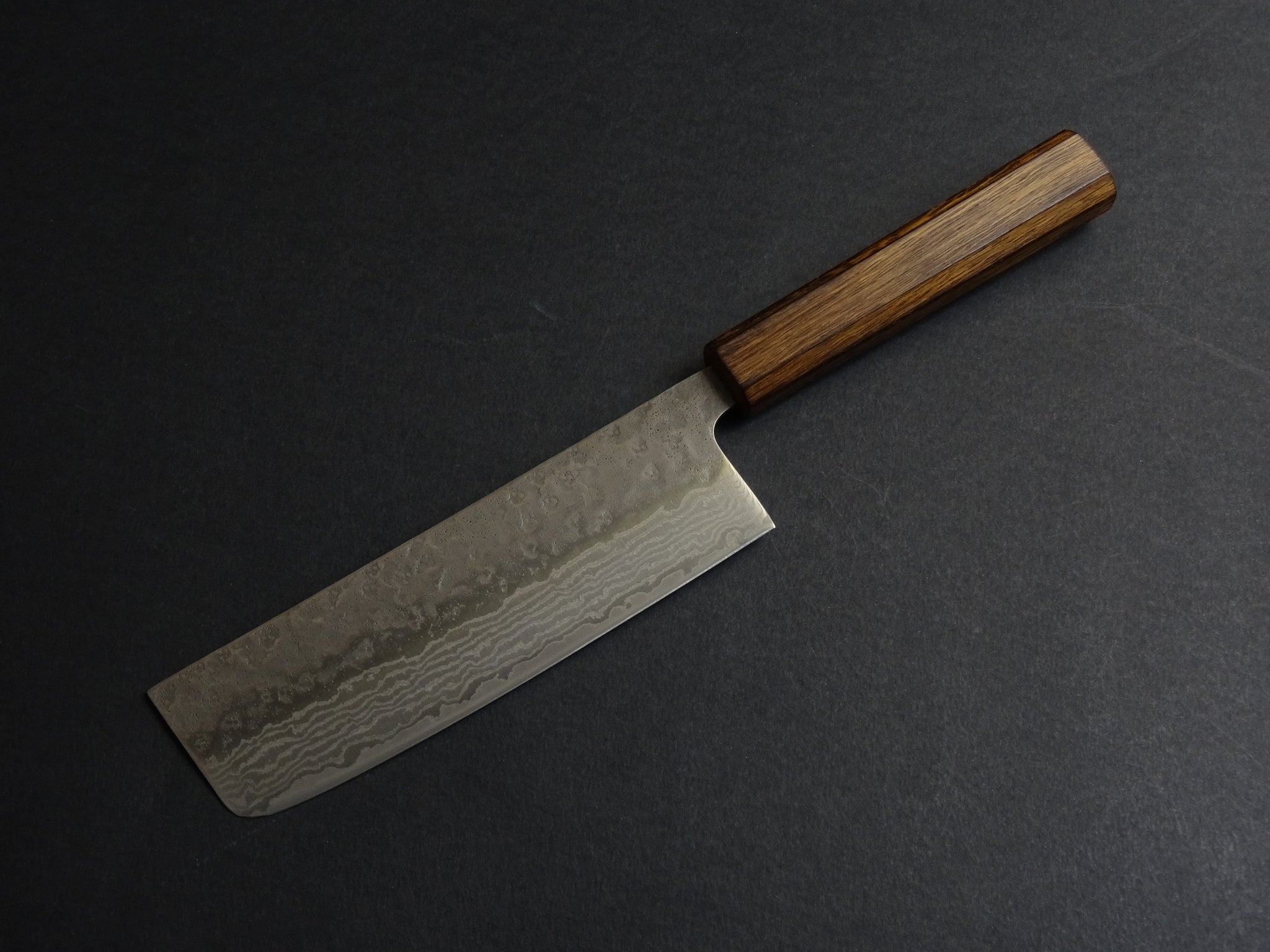 Kichiji 440C Hammered Damascus Nakiri Oak/Baikoku Handle