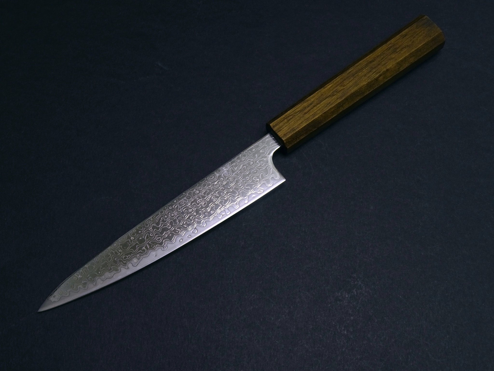 KICHIJI VG-10 DAMASCUS PETTY KNIFE 150MM OCTAGONAL BLACK OAKWOOD HANDLE