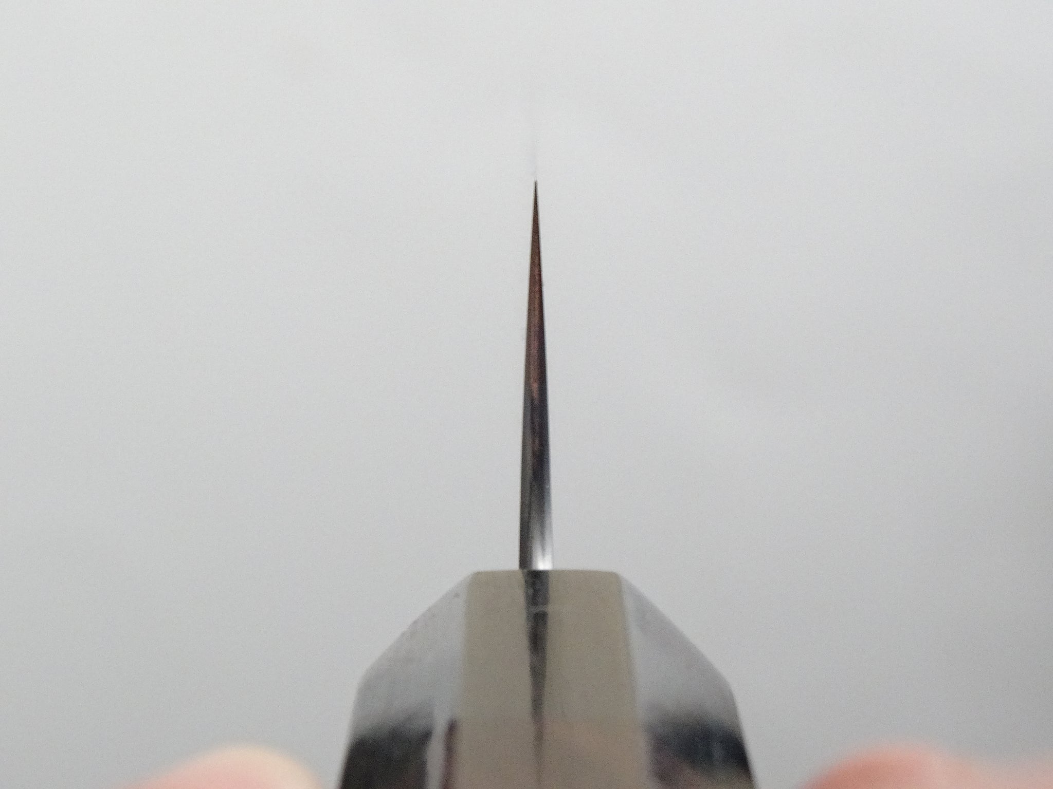 The Kotetsu series by Takayuki Shibata is renowned for its laser grind, this collection is extremely thin behind the edge and moves through ingredients effortlessly. The handle of this knife is made from Rosewood chosen for its durability; it is a traditional Japanese octagonal handle. The shape of this series was inspired by the design of a famous Japanese battleship and the name Kotetsu refers to the extremely hard “Hagane” (hard steel) used in this series. Takayuki Shibata is a master sharpener based in Fukuyama city, Hiroshima prefecture. Shibata-San hand sharpens all the Kotetsu series with his own unique method, this gives them both a polished but toothy edge making these knives truly breath taking to cut with out of the box.