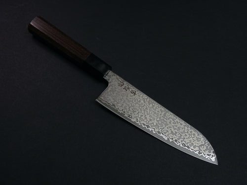 KICHIJI HIKARI SLD STAINLESS CLAD DAMASCUS KUROZOME SANTOKU 170MM OCTAGONAL WENGE HANDLE
