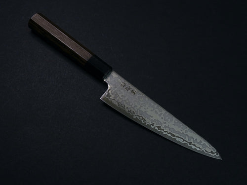 KICHIJI HIKARI SLD STAINLESS CLAD DAMASCUS KUROZOME KO-SANTOKU 150MM OCTAGONAL WENGE HANDLE