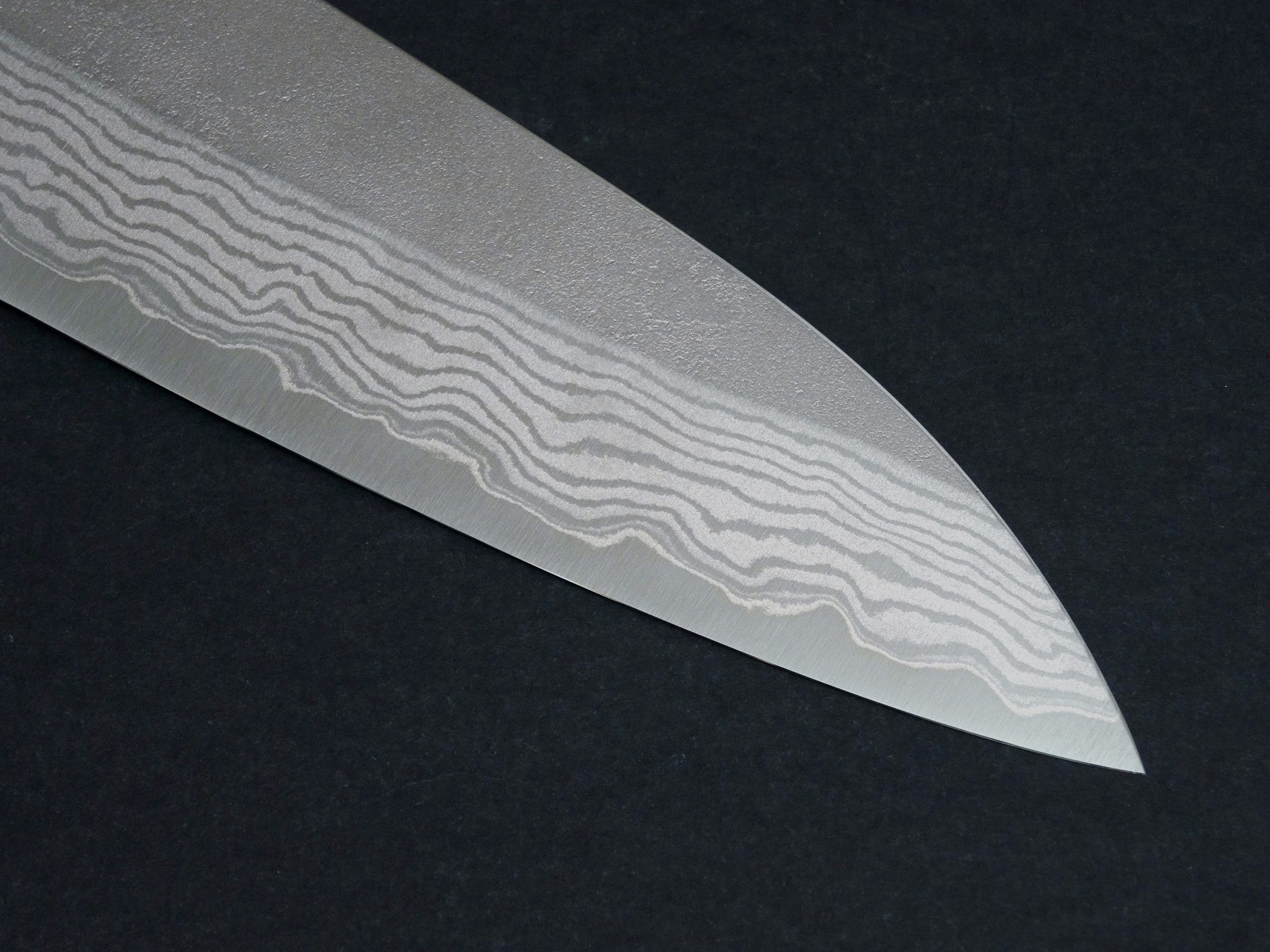 Hand forged by master bladesmith Yoshimi Kato, this damascus collection is made from high performance VG10 steel renowned for its edge holding and ability to take a fine edge. This series has a rustic nashiji finish and is ground thin for superior cutting performance. The handle is octagonal and made from maplewood.