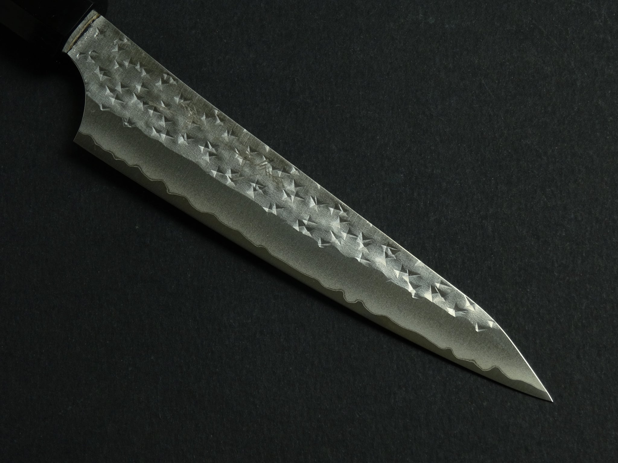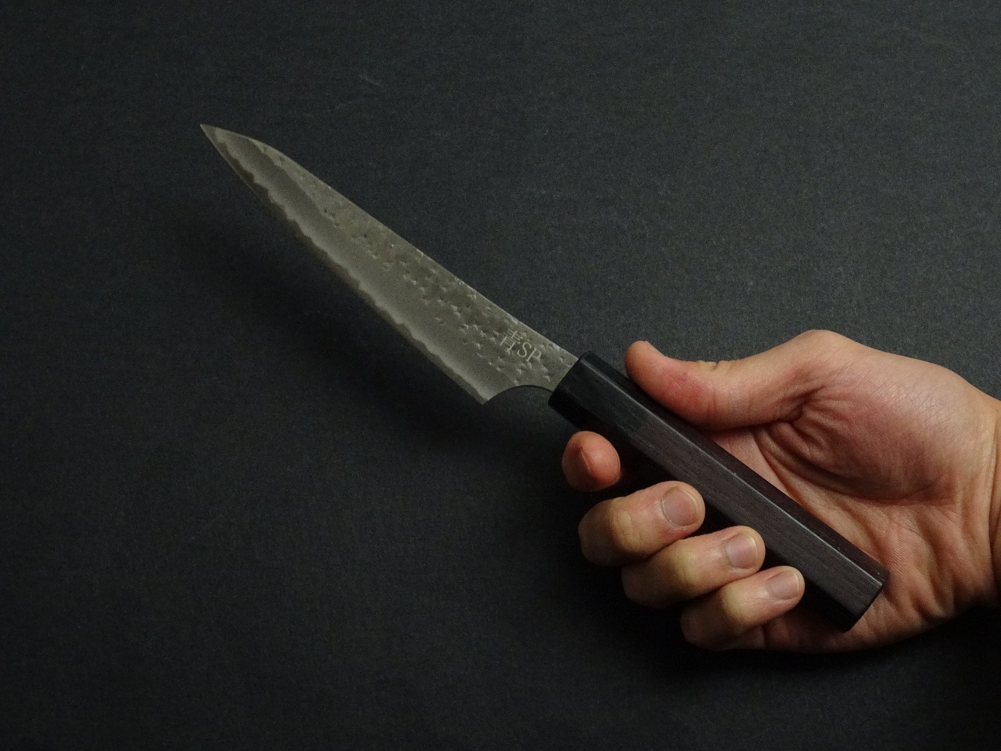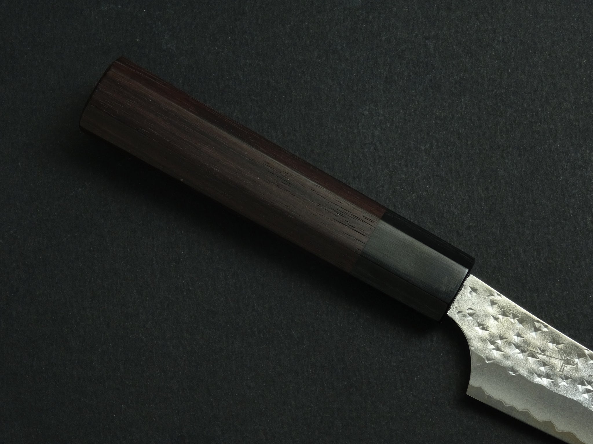 Yu Kurosaki and his brother Makoto are internationally renowned for their craftsmanship. This series 'Kokusen' is a San-Mai construction with a core of Aogami super carbon steel at approximately 65/66 HRC.